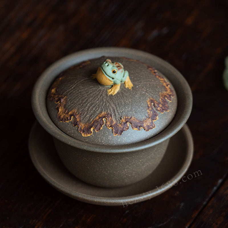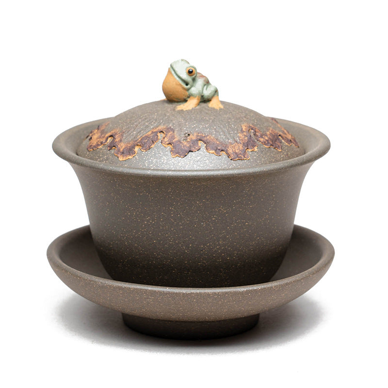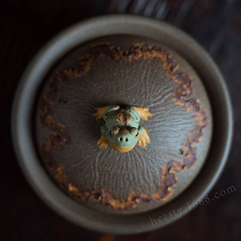 紫砂青蛙盖碗120CC宜兴三才盖碗茶碗敬茶碗大茶杯蛙趣仿生茶具套装配件