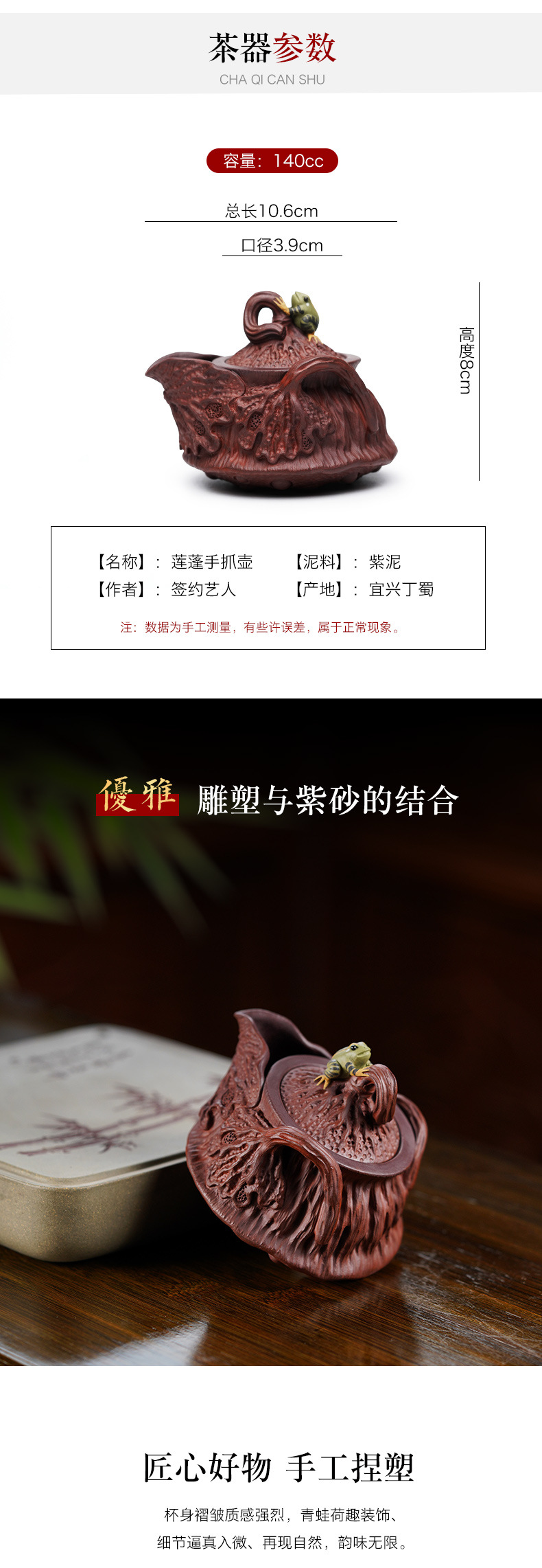 热销全手工莲蓬手抓壶140CC高档紫泥茶壶高水波新款公道杯盖碗茶具精品